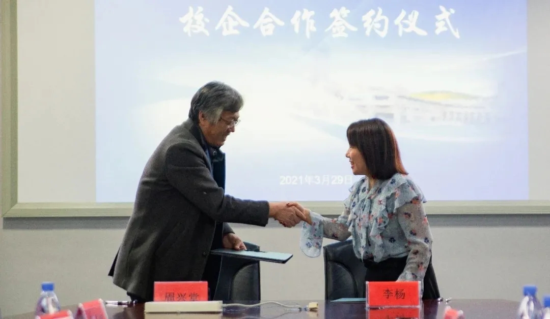 周興堂書記與李楊經(jīng)理代表雙方簽訂校企合作協(xié)議。